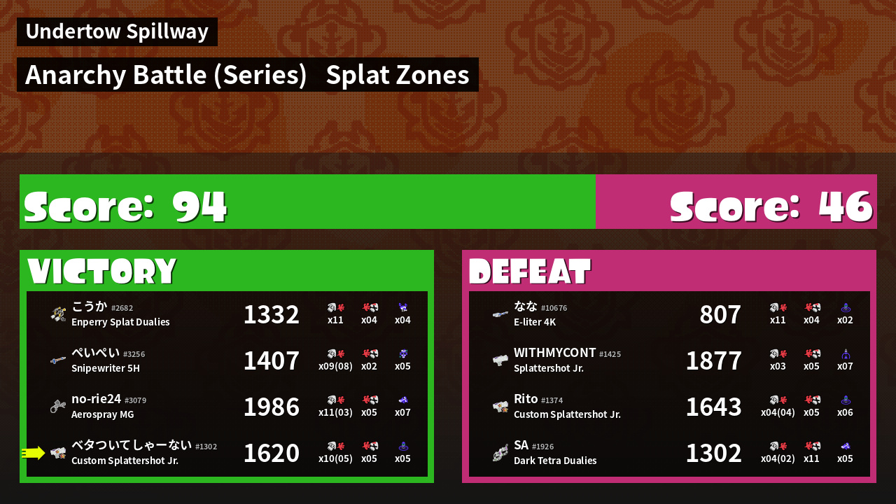| Mode | Splat Zones - Anarchy Battle (Series) | ||