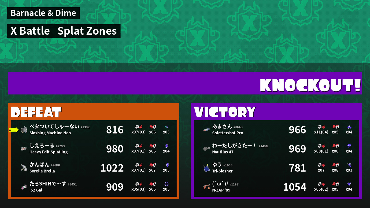 | Mode | Splat Zones - X Battle | ||