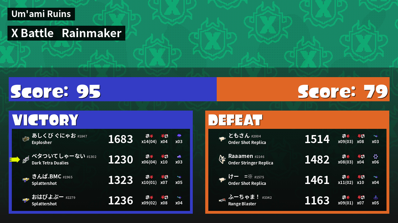 | Medals | Record-Score Setter #1 Splat Assister #1 Rainmaker Stopper | ||