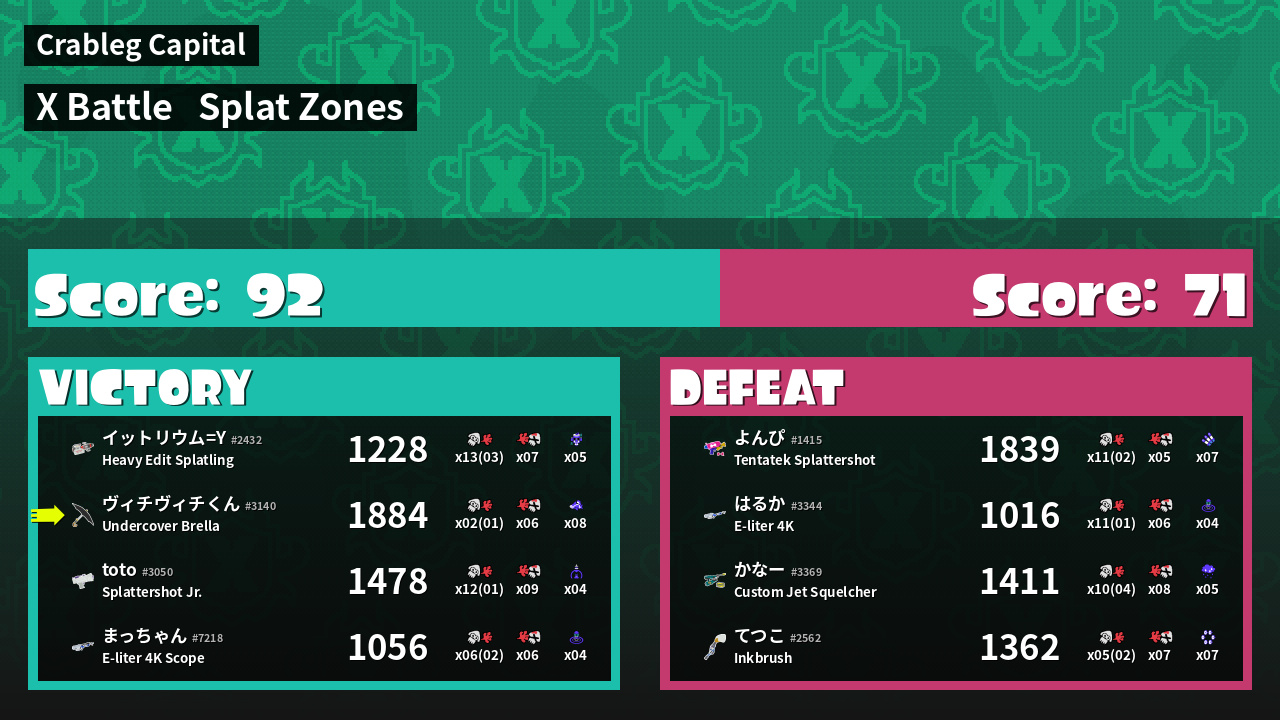 | Medals | #1 Splat Zone Inker #1 Turf Inker #1 Super Jump Spot | ||