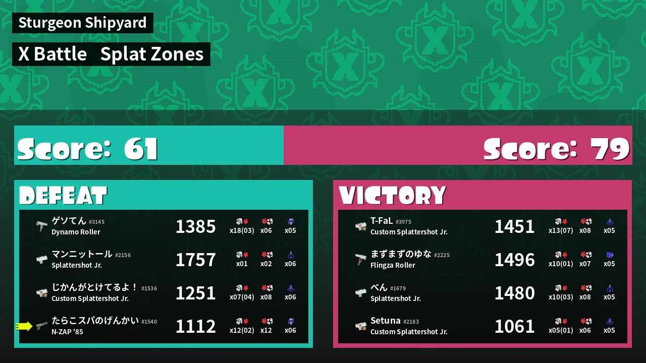 | Mode | Splat Zones - X Battle | ||