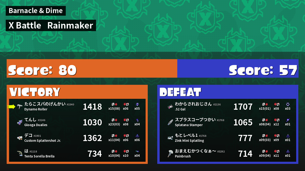 | Weapon | Dynamo Roller ( Sprinkler / Tacticooler) | ||