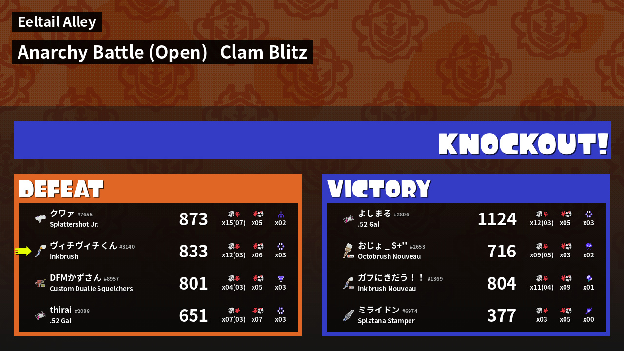 | Mode | Clam Blitz - Anarchy Battle (Open) | ||