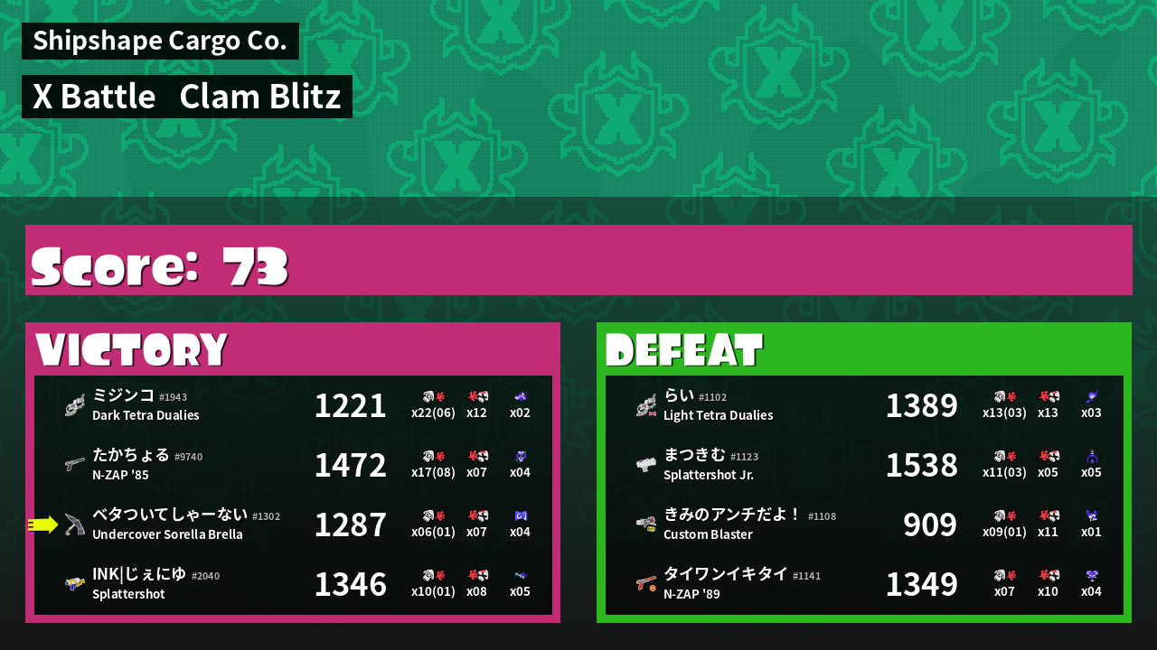 | Weapon | Undercover Sorella Brella ( Torpedo / Splattercolor Screen) | ||