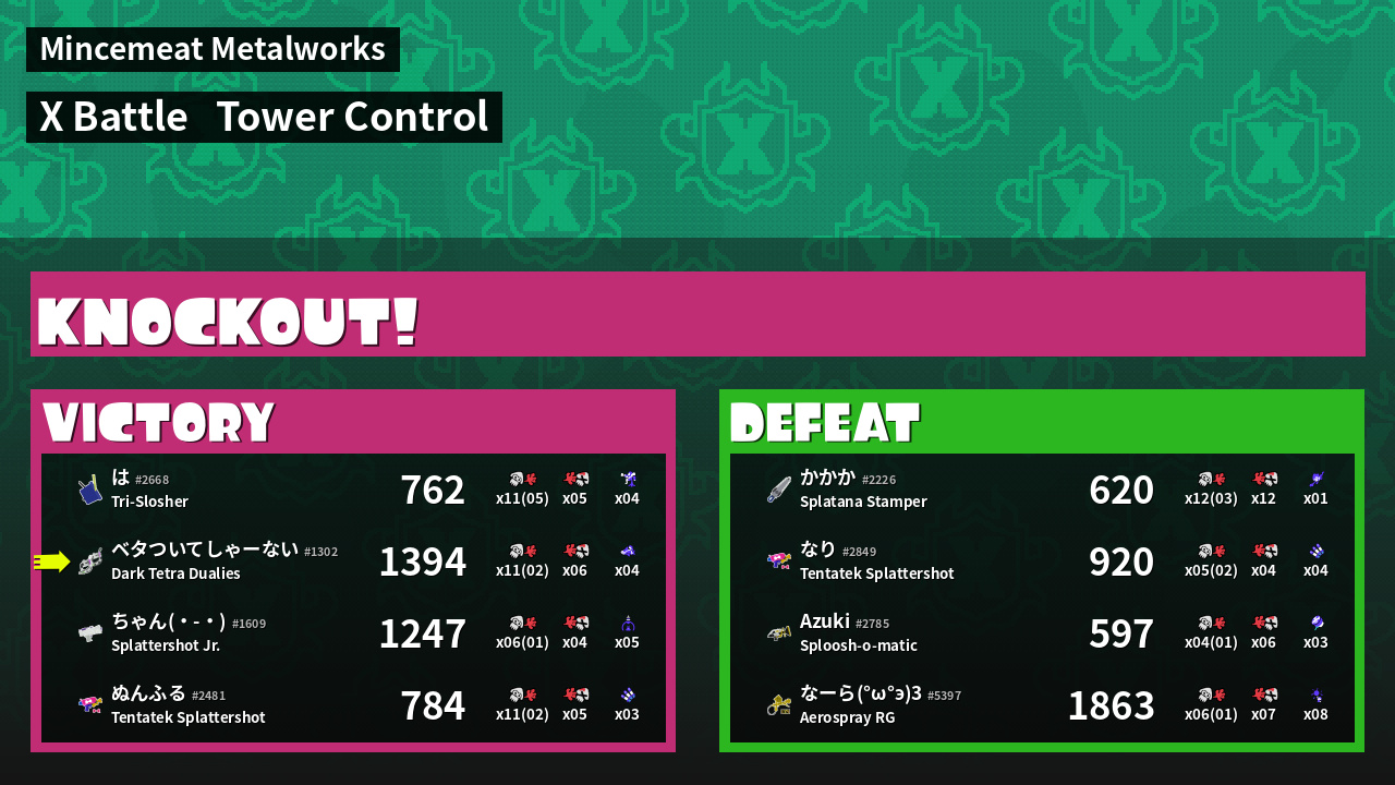 | Medals | #1 Overall Splatter #1 Turf Inker #1 Enemy Splatter | ||