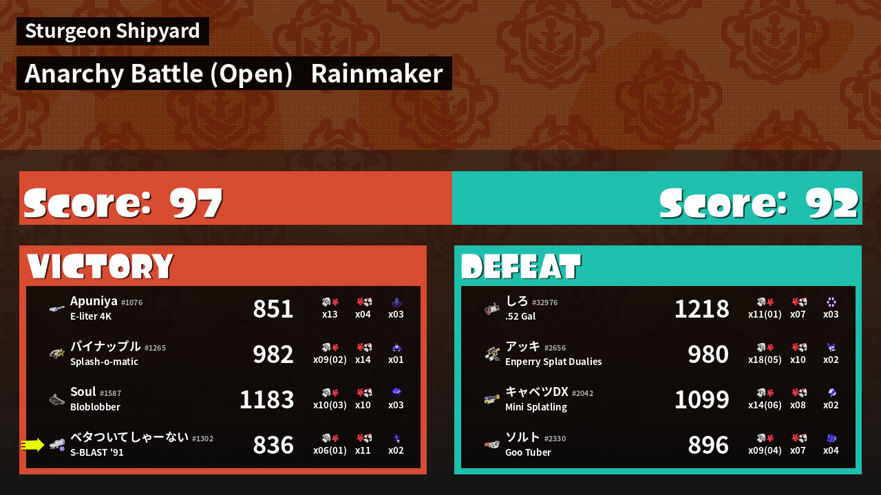 | Mode | Rainmaker - Anarchy Battle (Open) | ||