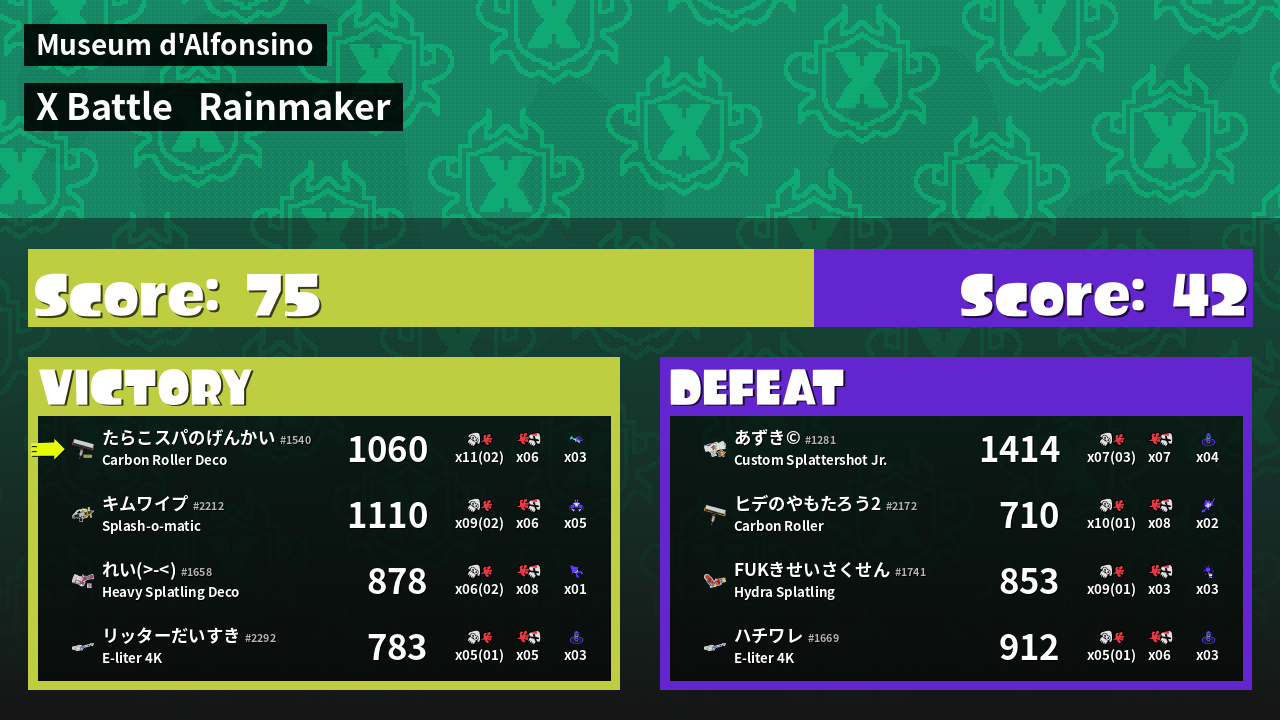 | Weapon | Carbon Roller Deco ( Burst Bomb / Trizooka) | ||