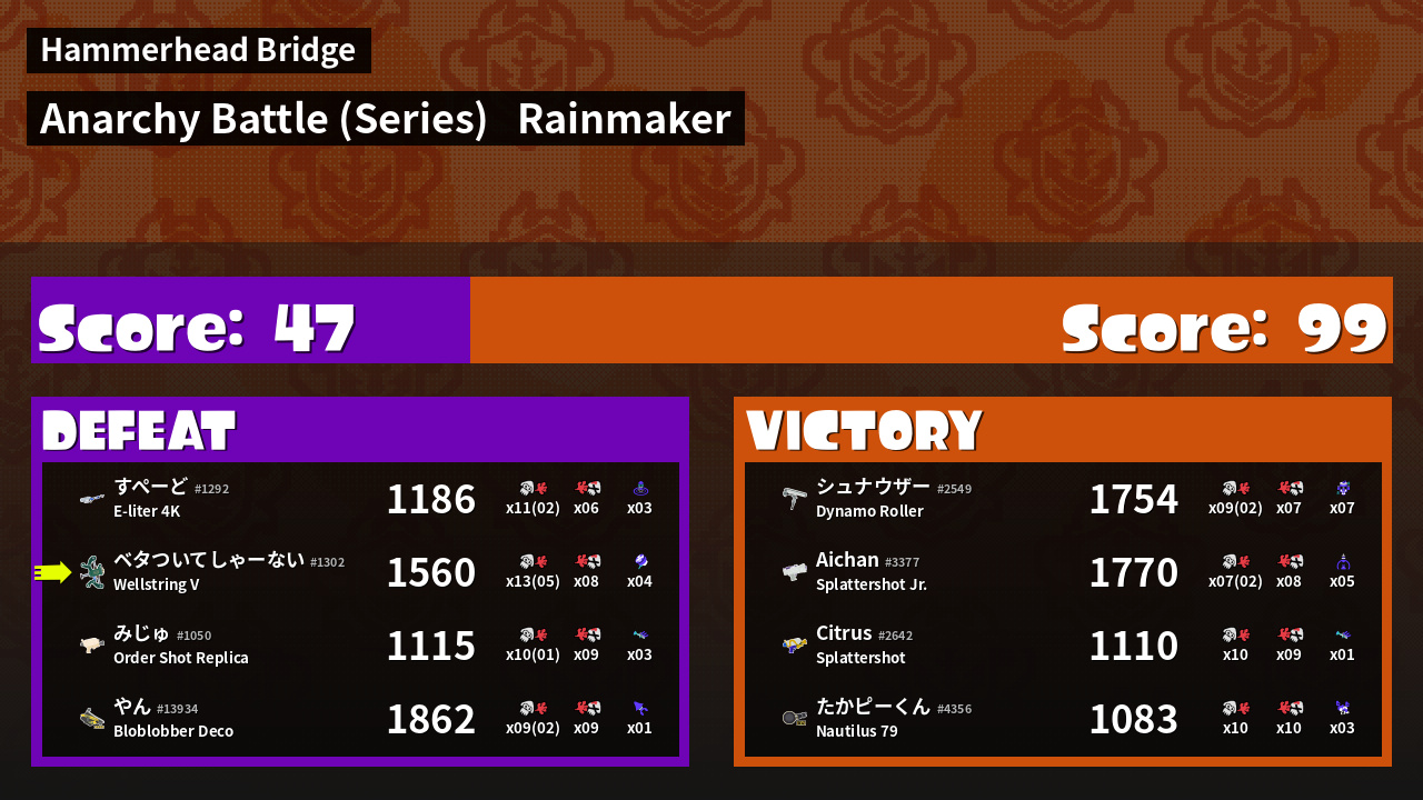 | Mode | Rainmaker - Anarchy Battle (Series) | ||