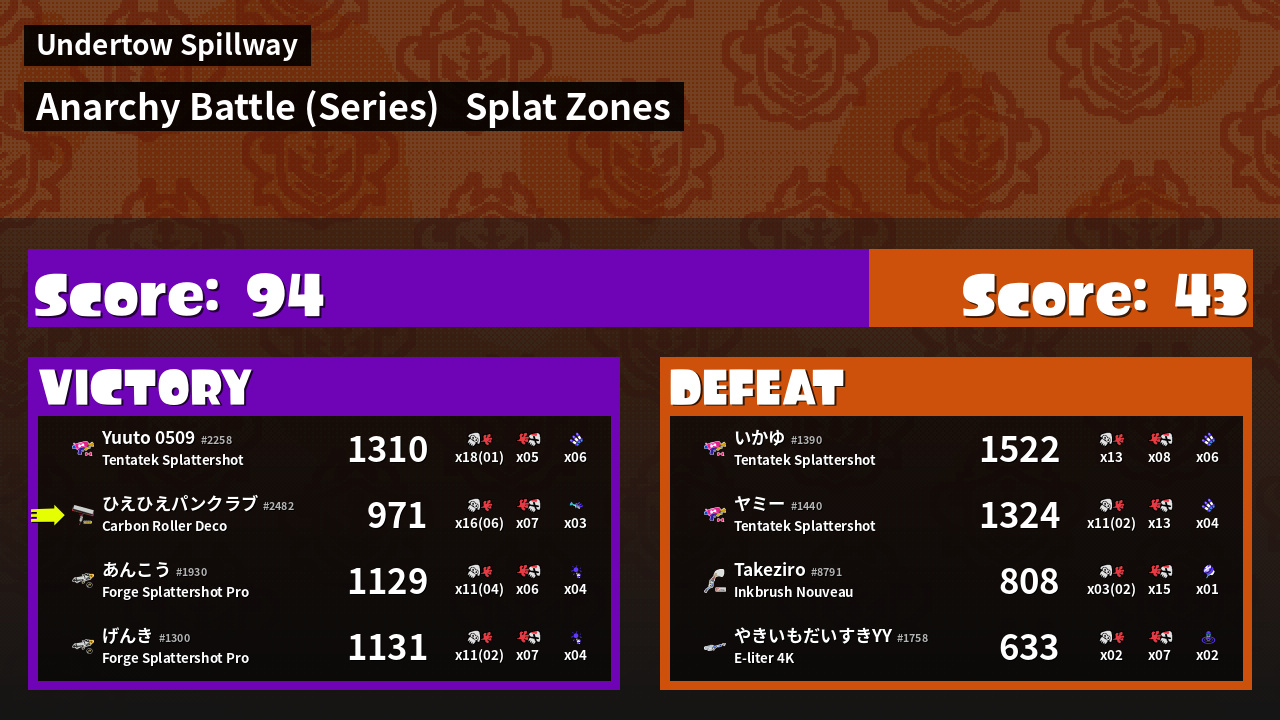 | Mode | Splat Zones - Anarchy Battle (Series) | ||
