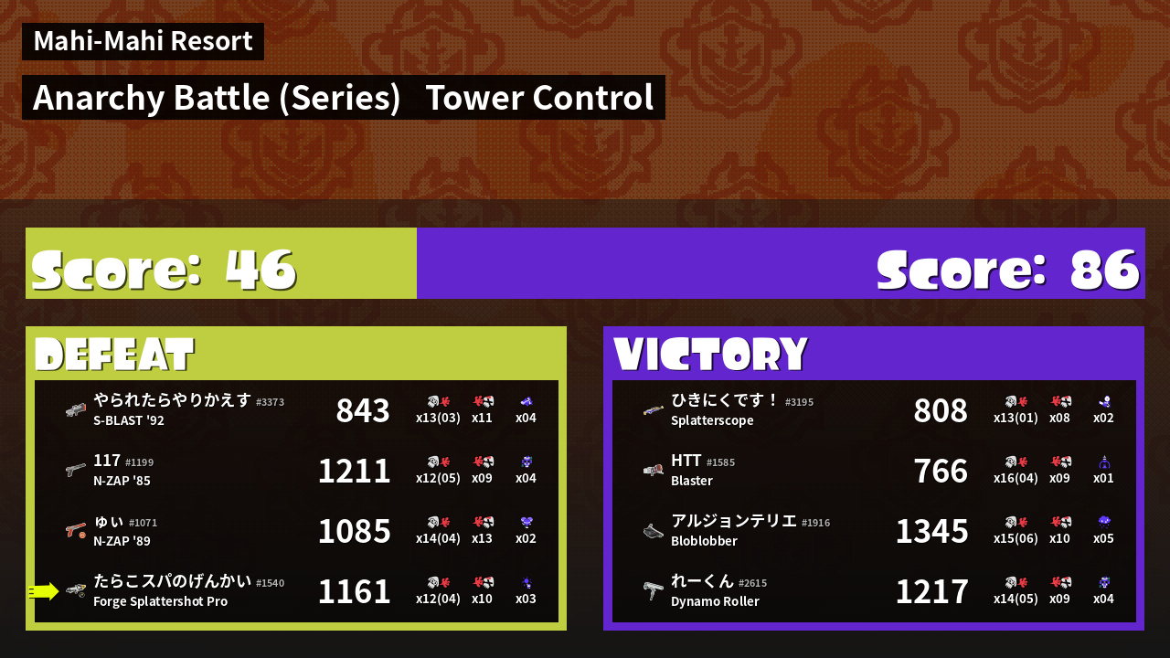| Mode | Tower Control - Anarchy Battle (Series) | ||