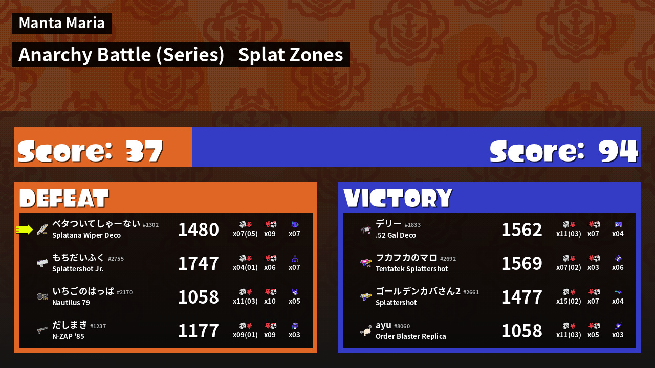 | Medals | #1 Splat Zone Guard #1 Popular Target #1 Splat Assister | ||