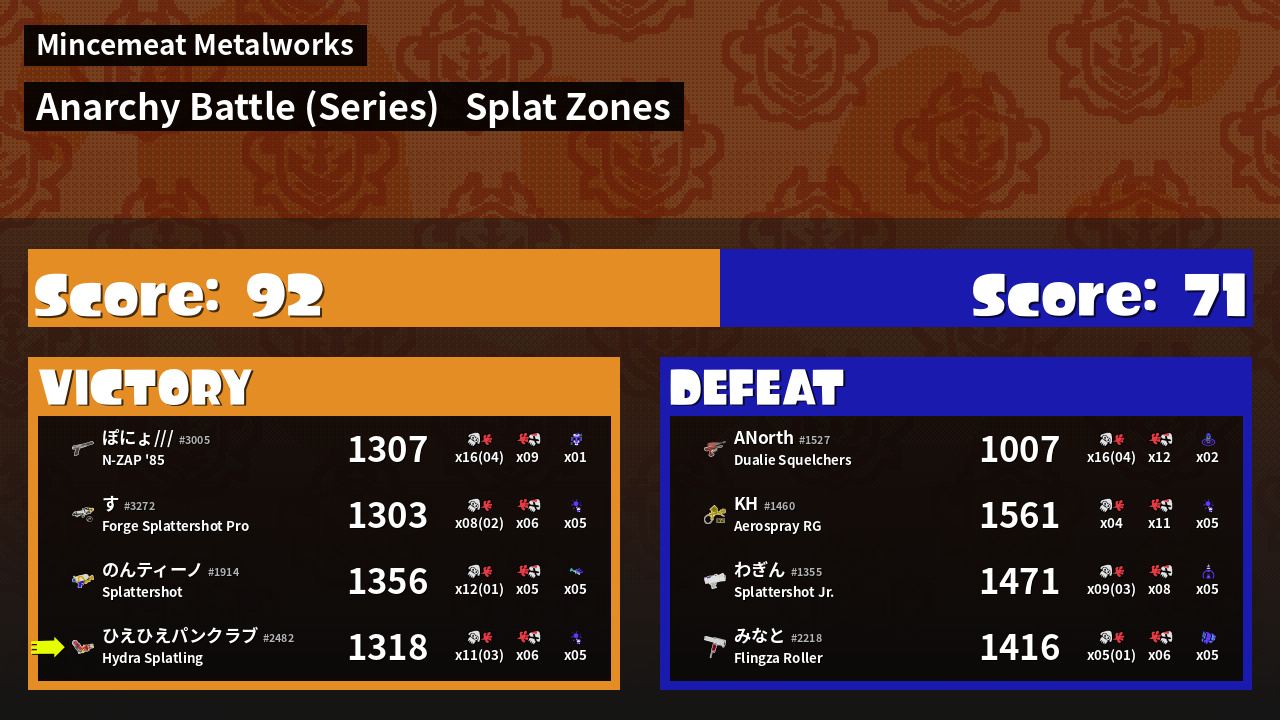 | Mode | Splat Zones - Anarchy Battle (Series) | ||