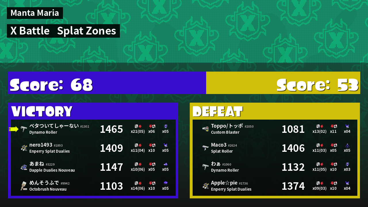 | Medals | #1 Overall Splatter #1 Splat Zone Inker #1 Splat Zone Guard | ||