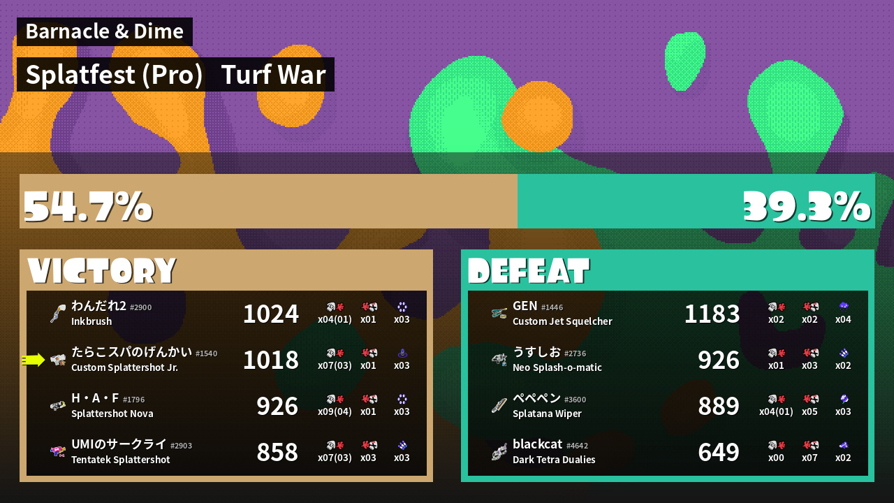 | Medals | #1 Damage Taker #1 Wave Breaker User #2 Overall Splatter | ||