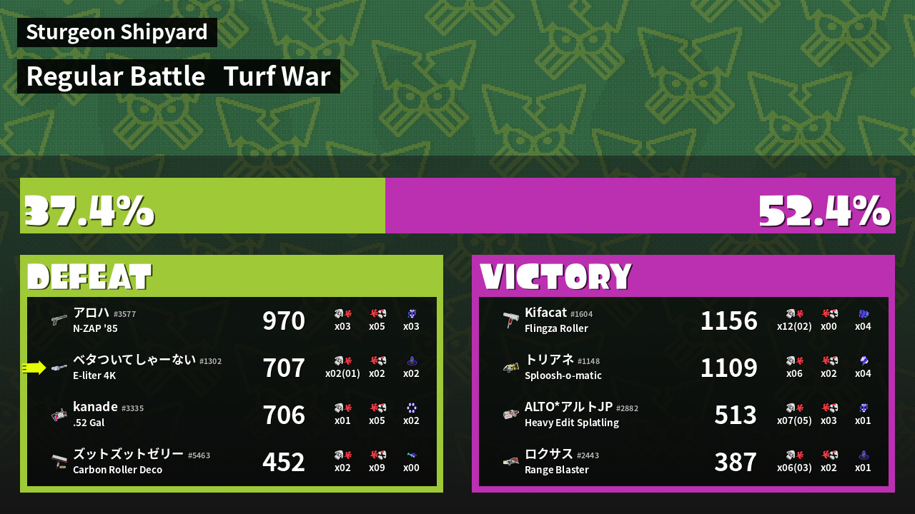 | Mode | Turf War - Regular Battle | ||