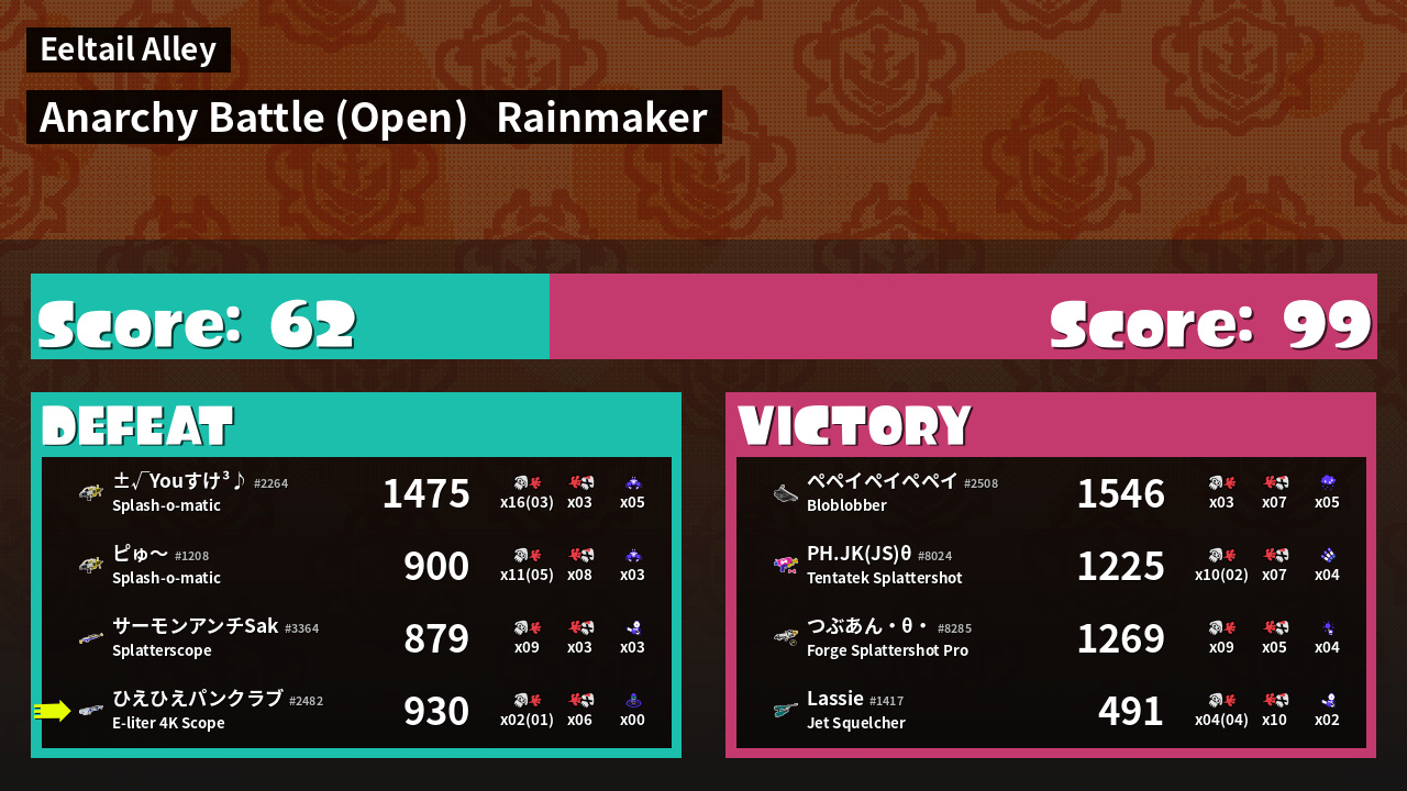 | Mode | Rainmaker - Anarchy Battle (Open) | ||