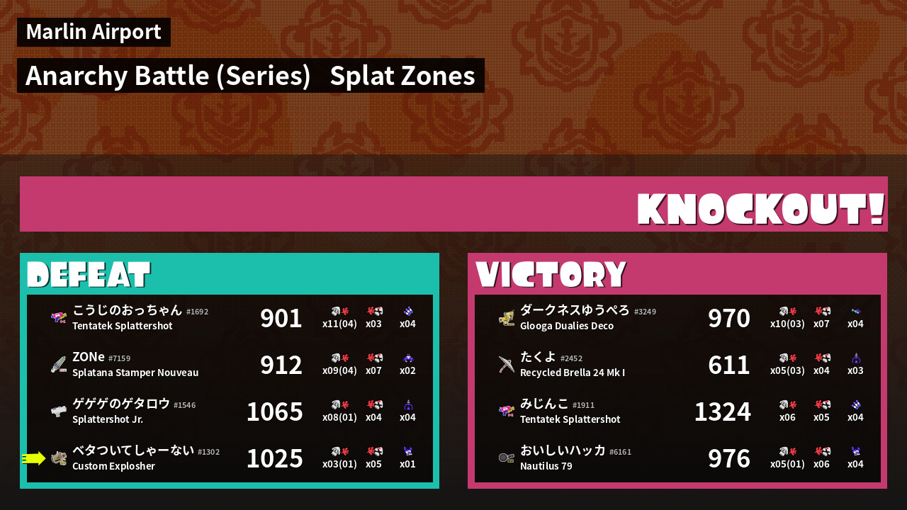 | Mode | Splat Zones - Anarchy Battle (Series) | ||