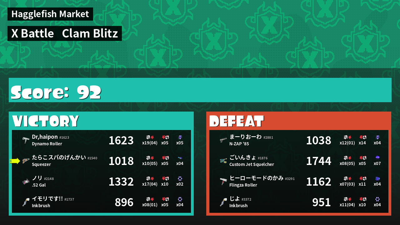 | Mode | Clam Blitz - X Battle | ||