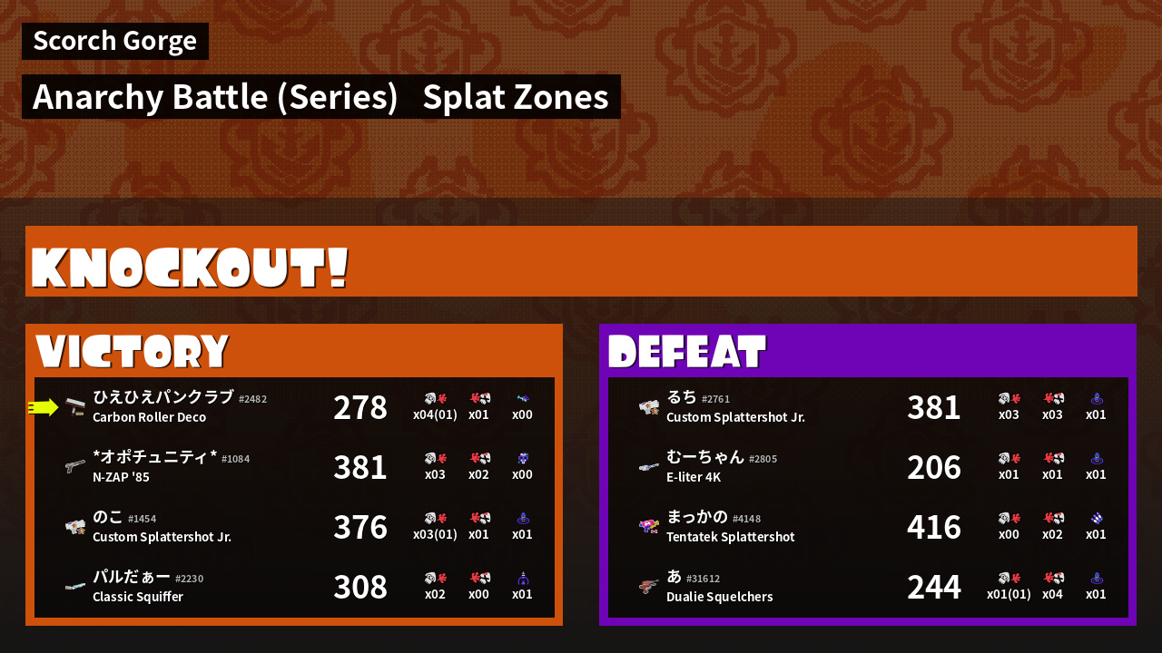 | Mode | Splat Zones - Anarchy Battle (Series) | ||