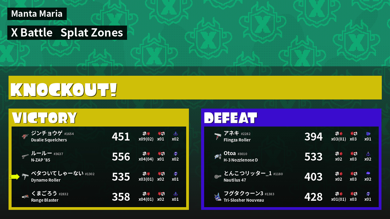 | Medals | #1 Super Jump Spot #1 Damage Taker #2 Splat Zone Inker | ||