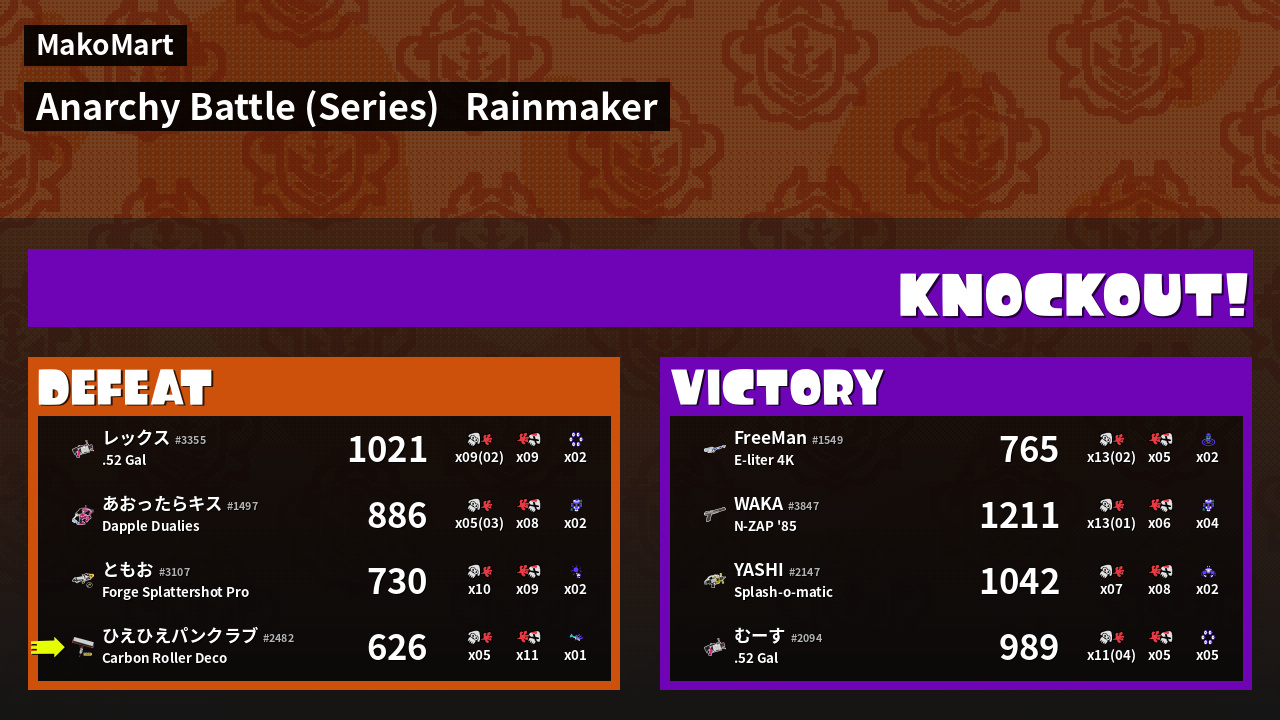 | Weapon | Carbon Roller Deco ( Burst Bomb / Trizooka) | ||