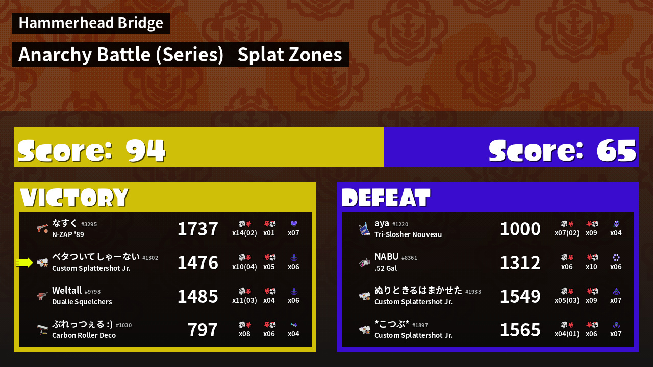 | Mode | Splat Zones - Anarchy Battle (Series) | ||