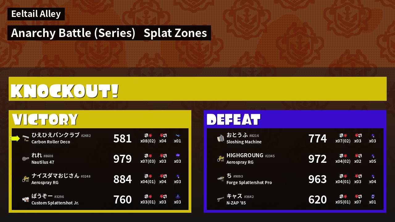 | Medals | #1 Overall Splatter #1 Splat Zone Guard #1 Enemy Splatter | ||