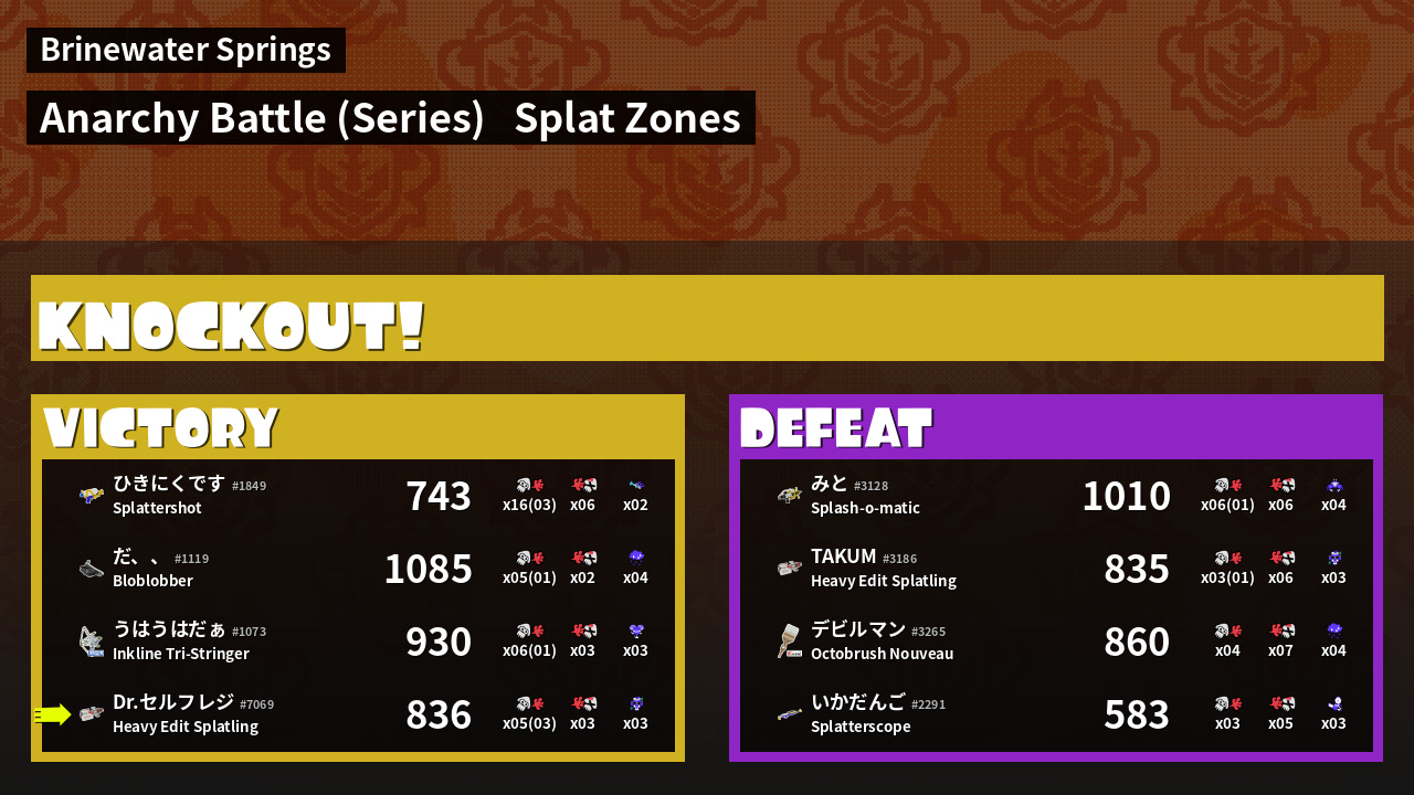 | Medals | #1 Splat Assister #1 Tacticooler User #2 Splat Zone Inker | ||
