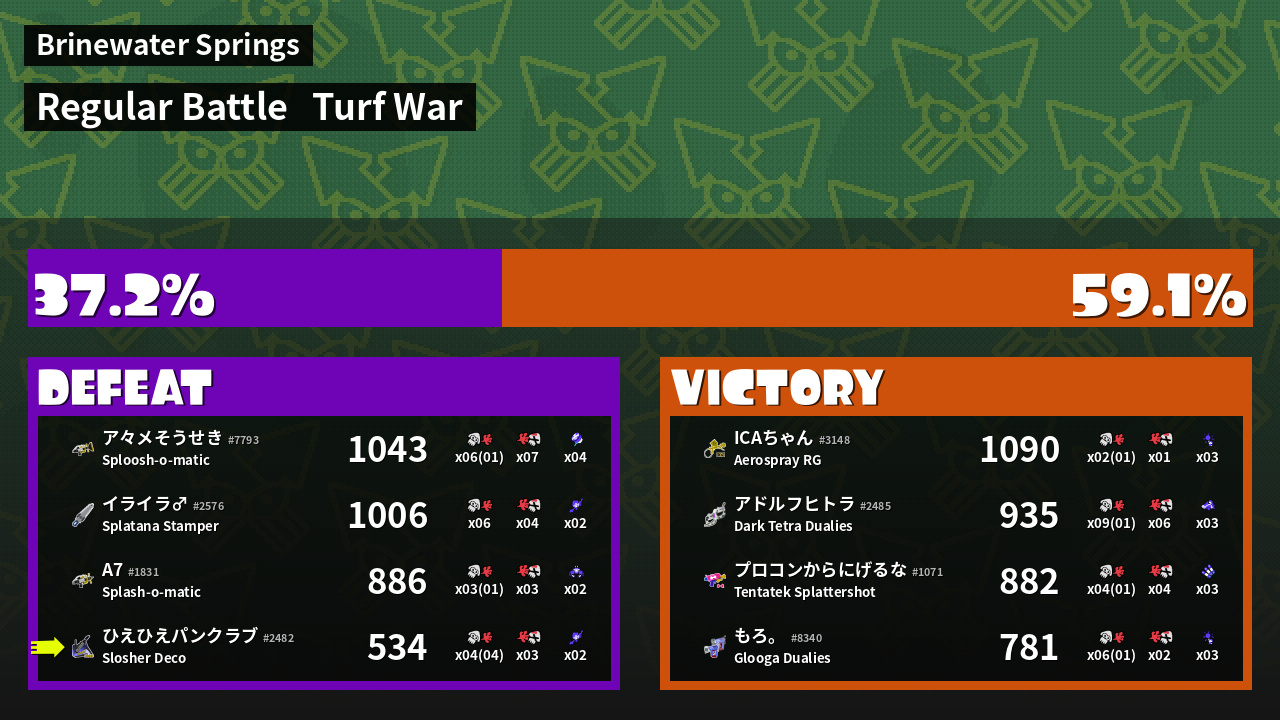 | Mode | Turf War - Regular Battle | ||