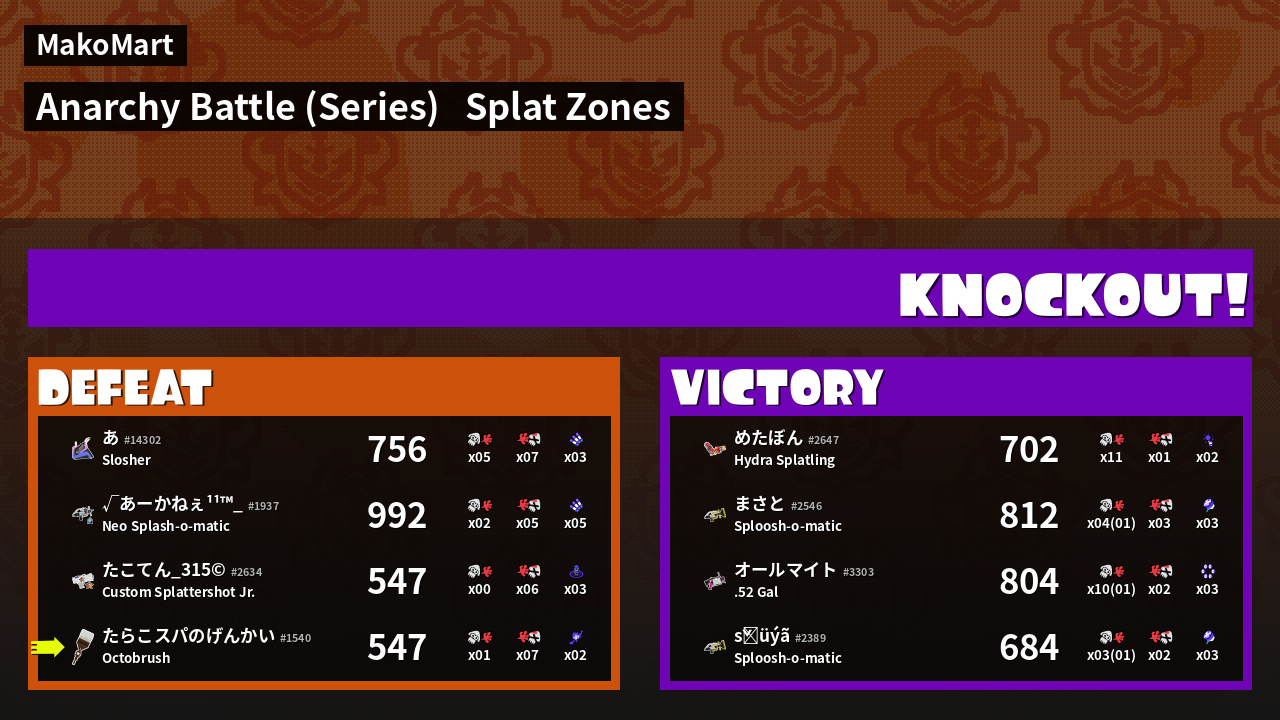 | Mode | Splat Zones - Anarchy Battle (Series) | ||