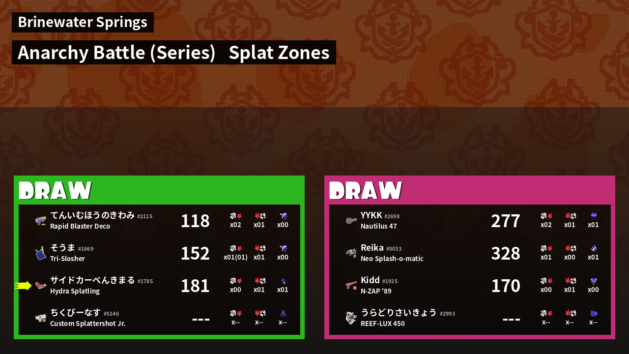 | Mode | Splat Zones - Anarchy Battle (Series) | ||