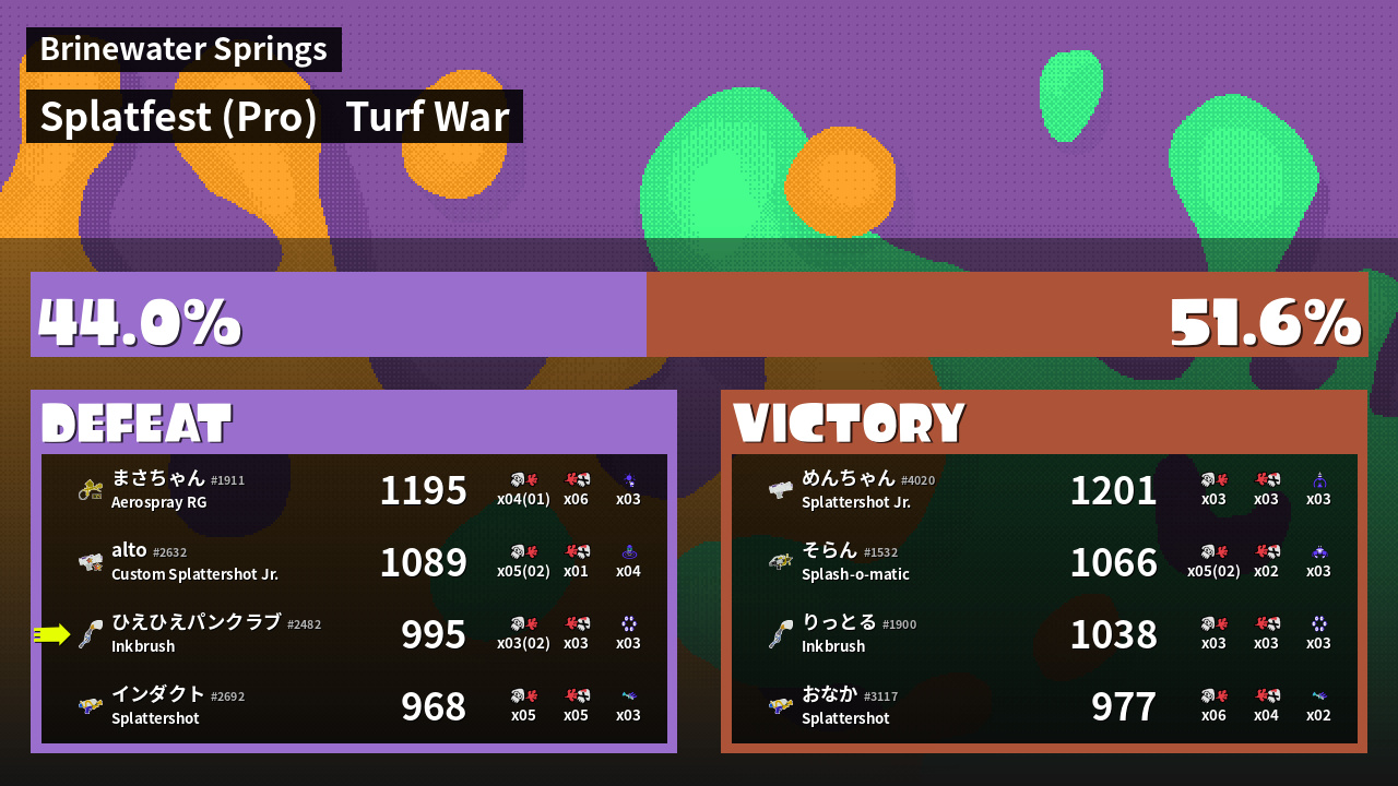 | Mode | Turf War - Splatfest (Pro) | ||