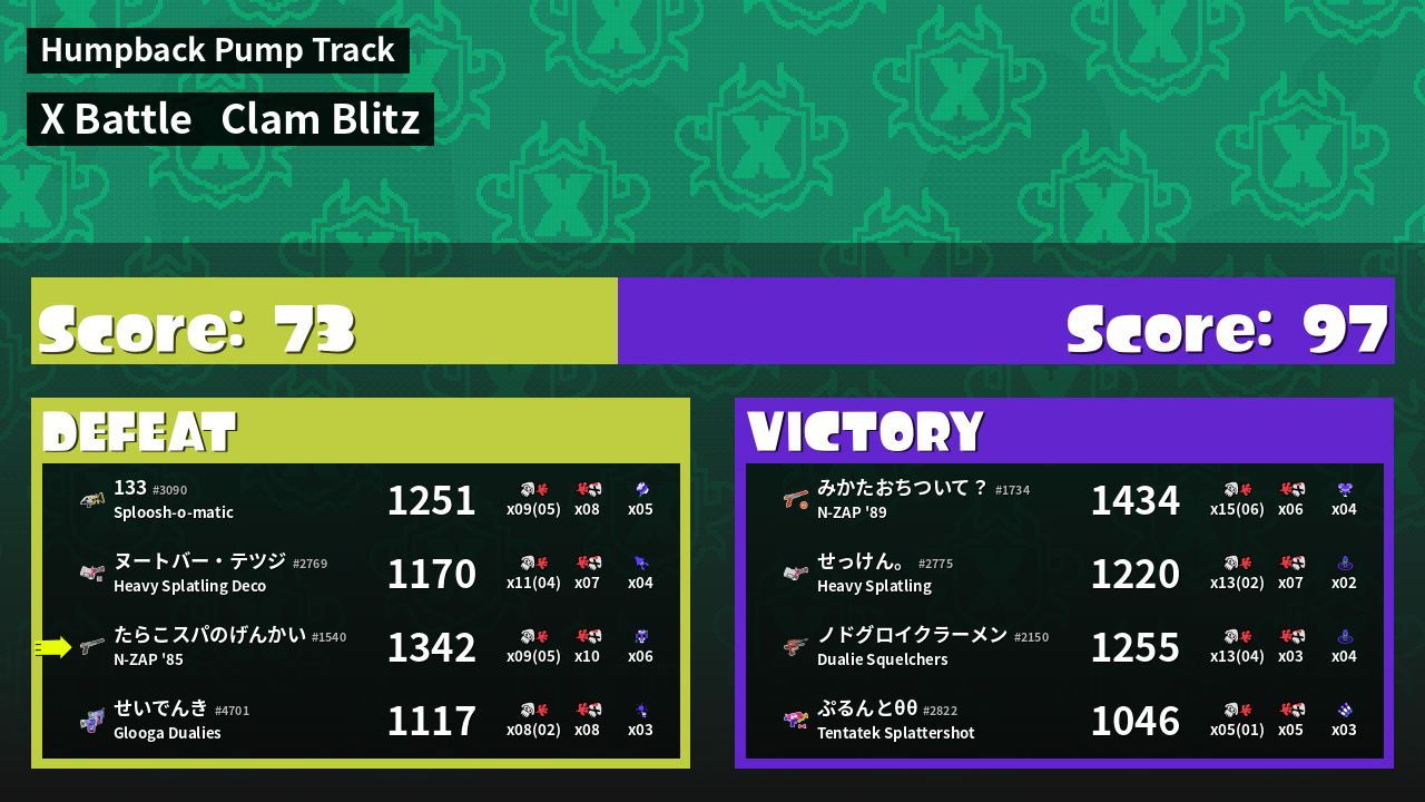 | Medals | #1 Turf Inker #1 Splat Assister #1 Ink Consumer | ||