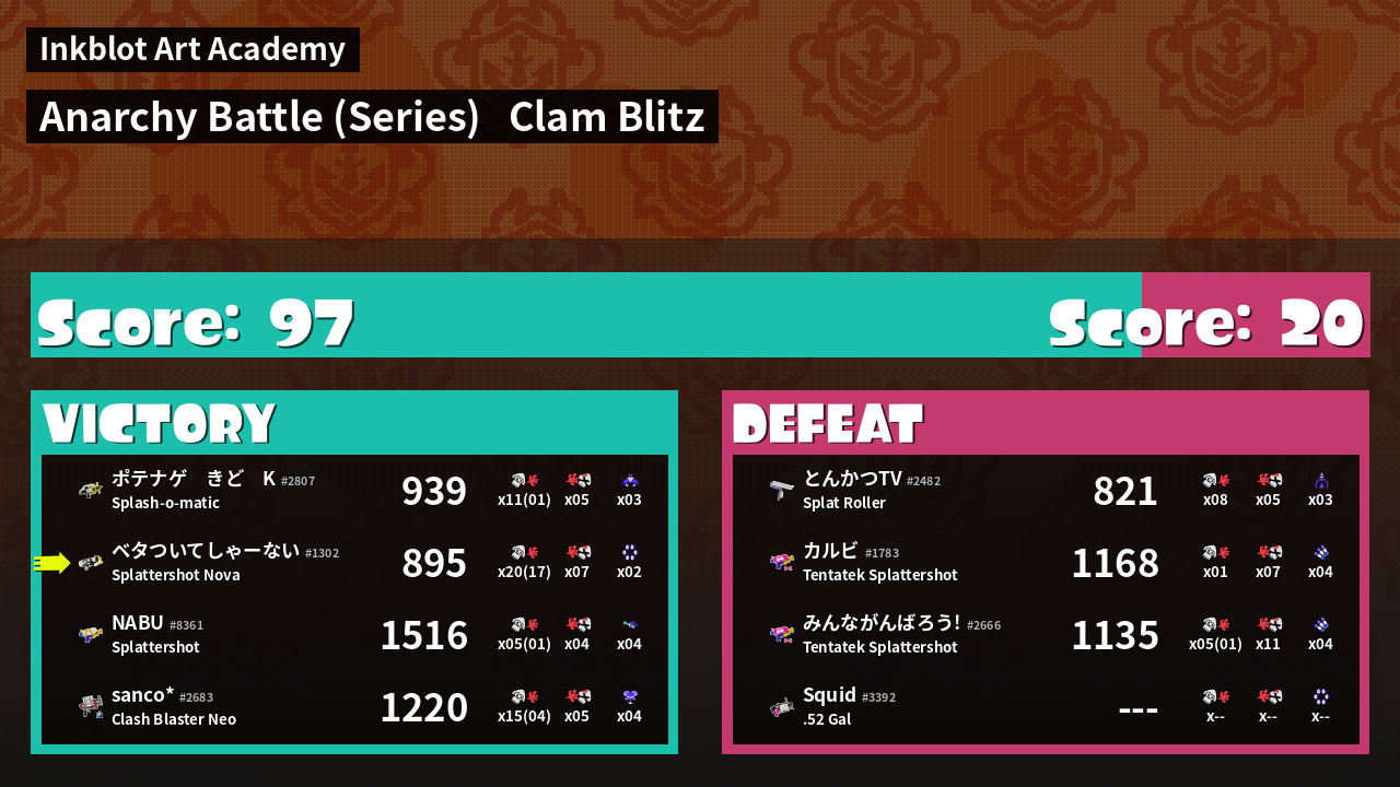 | Mode | Clam Blitz - Anarchy Battle (Series) | ||