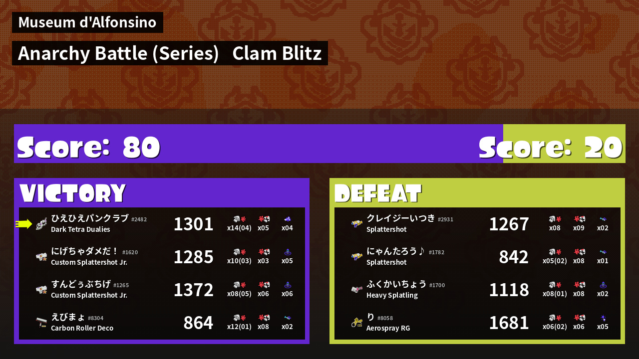 | Mode | Clam Blitz - Anarchy Battle (Series) | ||