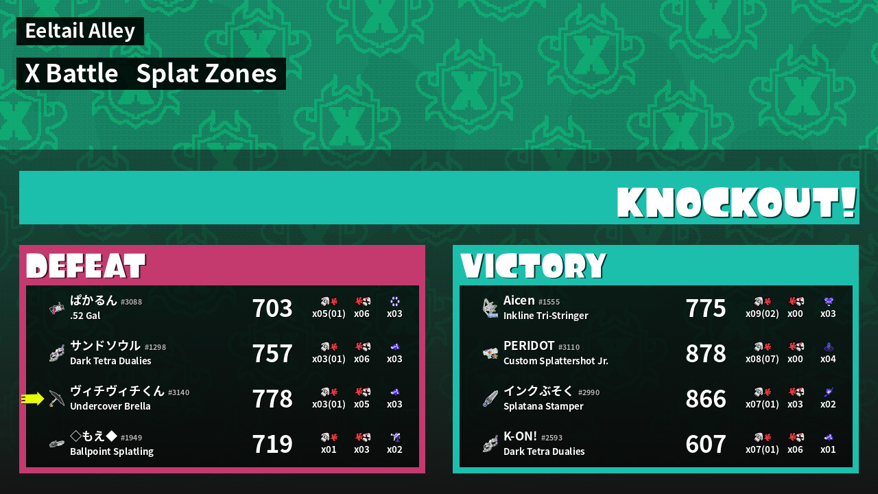 | Medals | #1 Turf Inker #1 Splat Assister #1 Ground Traveler | ||