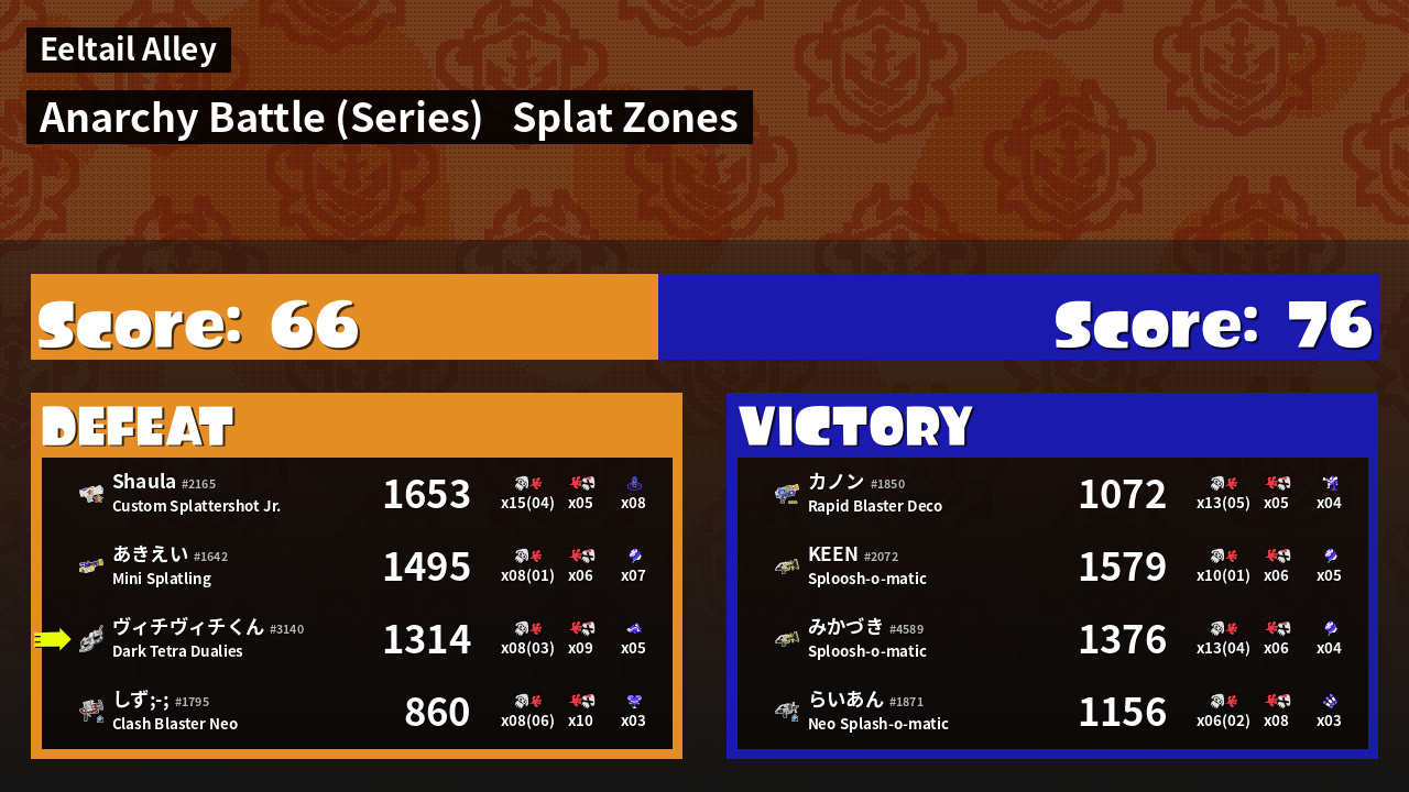 | Mode | Splat Zones - Anarchy Battle (Series) | ||