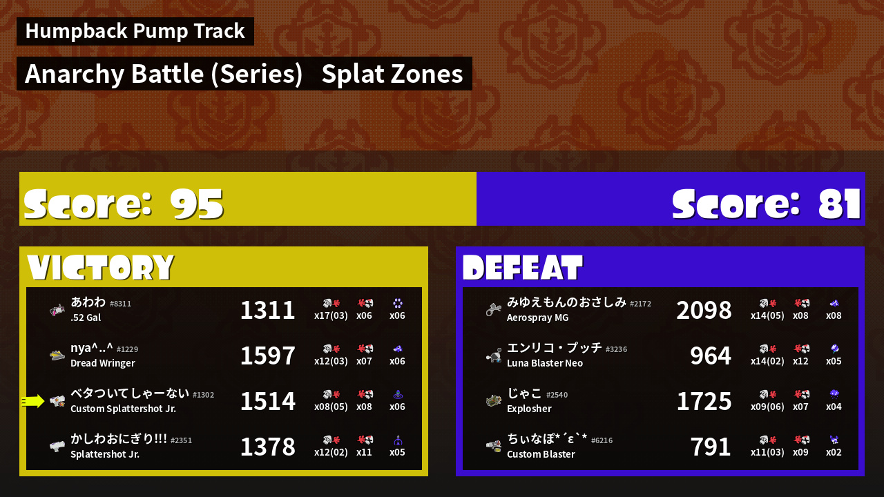 | Mode | Splat Zones - Anarchy Battle (Series) | ||