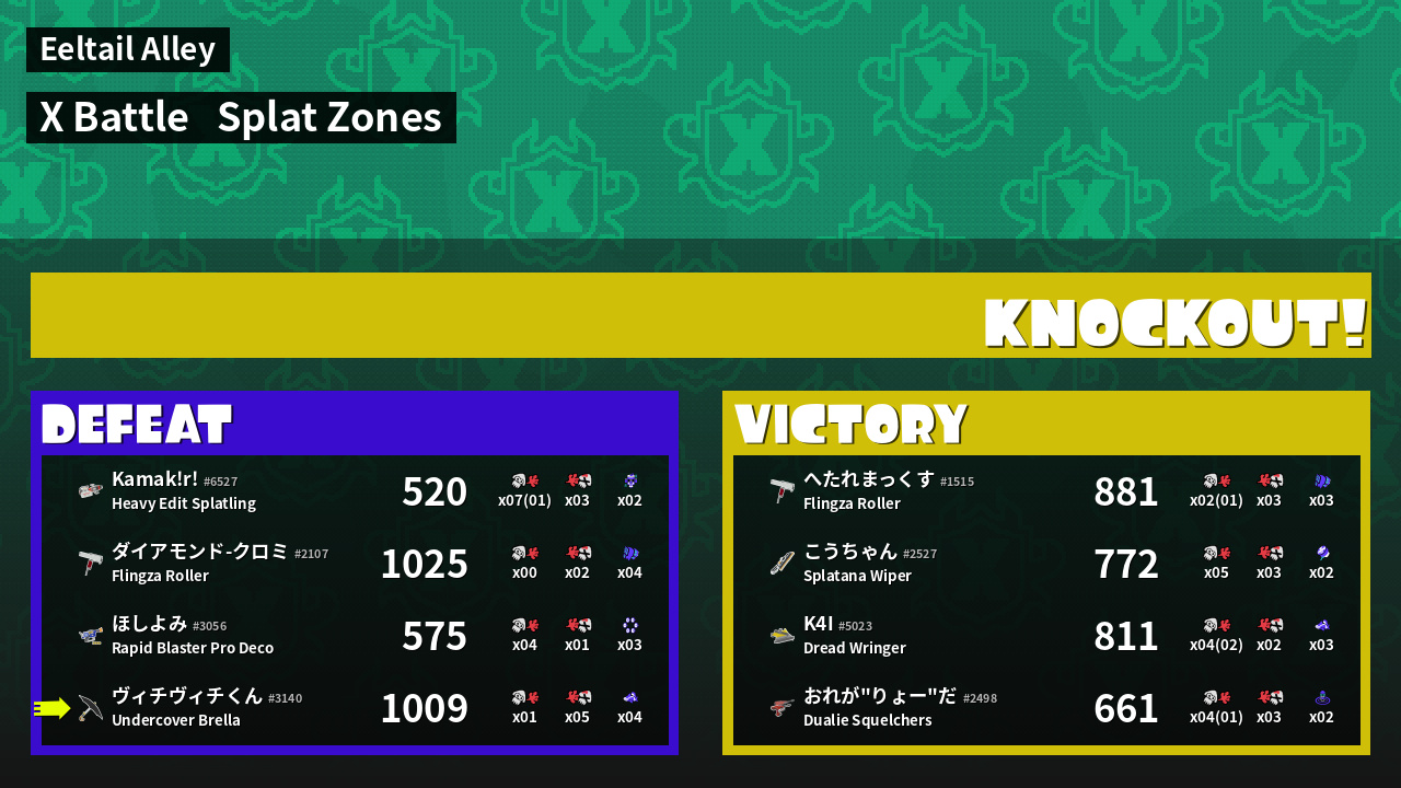 | Mode | Splat Zones - X Battle | ||
