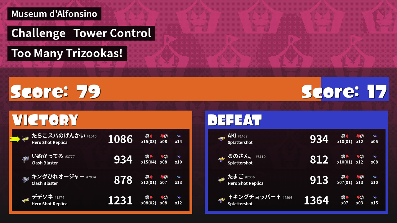 | Medals | #1 Overall Splatter #1 Score Booster Record-Score Setter | ||