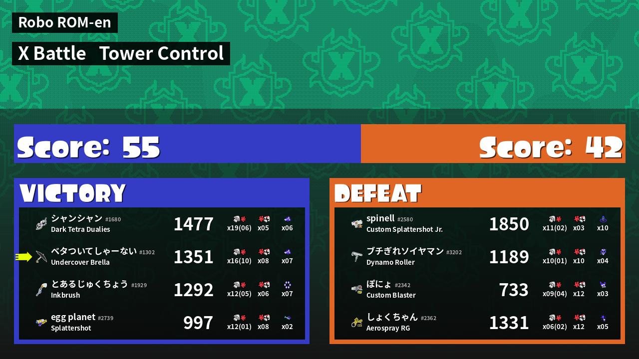 | Mode | Tower Control - X Battle | ||