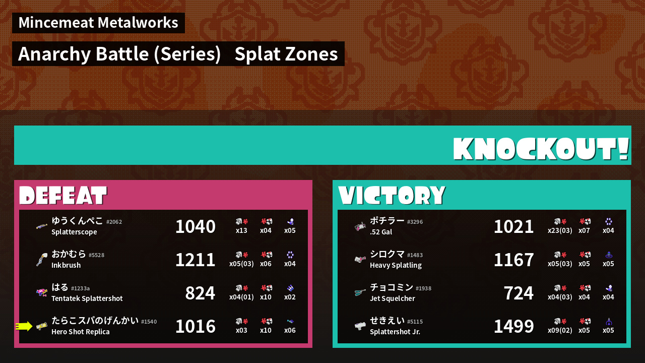 | Mode | Splat Zones - Anarchy Battle (Series) | ||