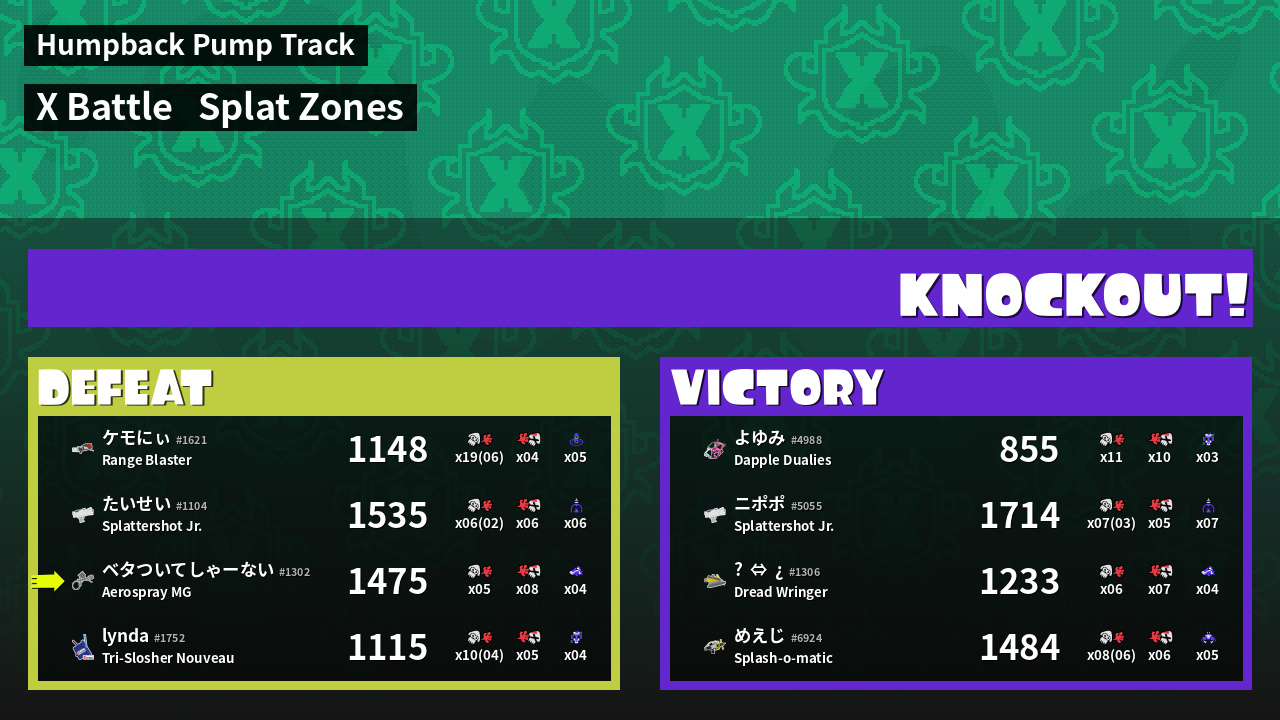 | Mode | Splat Zones - X Battle | ||