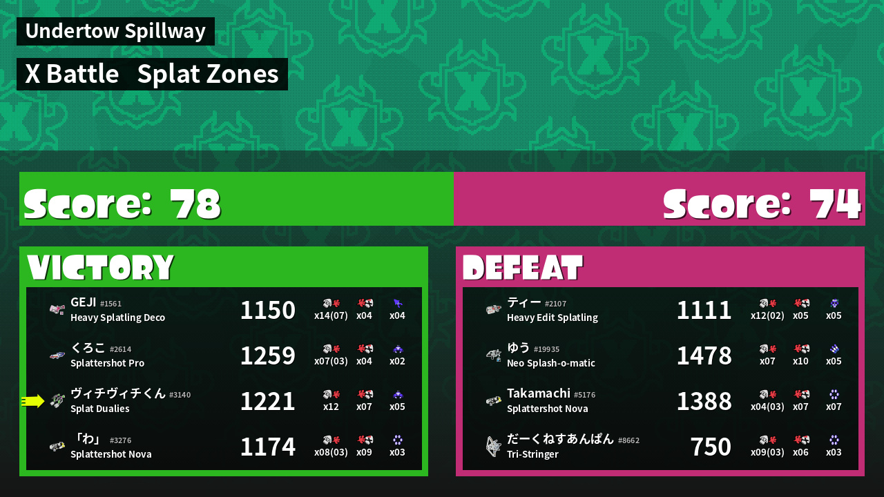 | Medals | #1 Enemy Splatter #1 Splat Zone Hero #1 Ink Consumer | ||