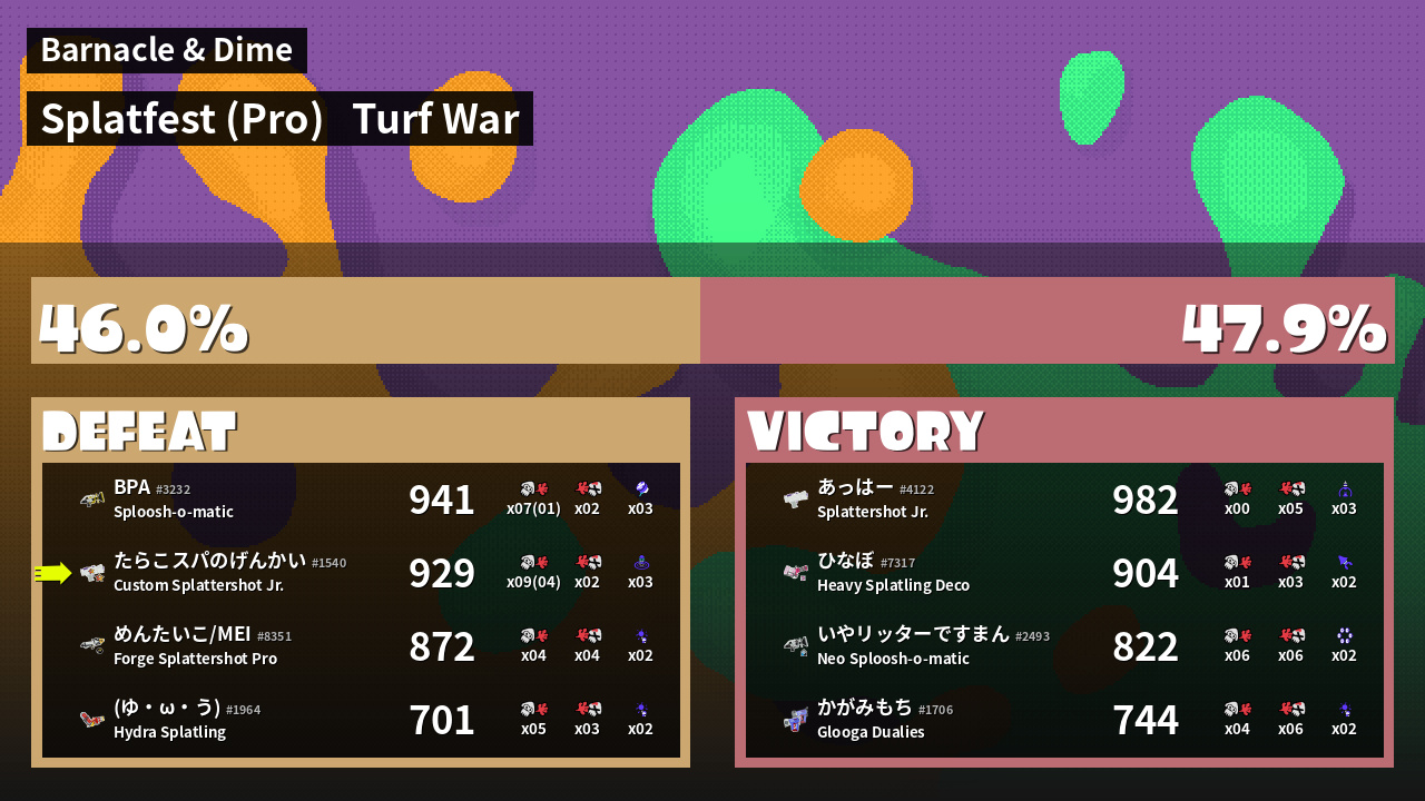 | Mode | Turf War - Splatfest (Pro) | ||