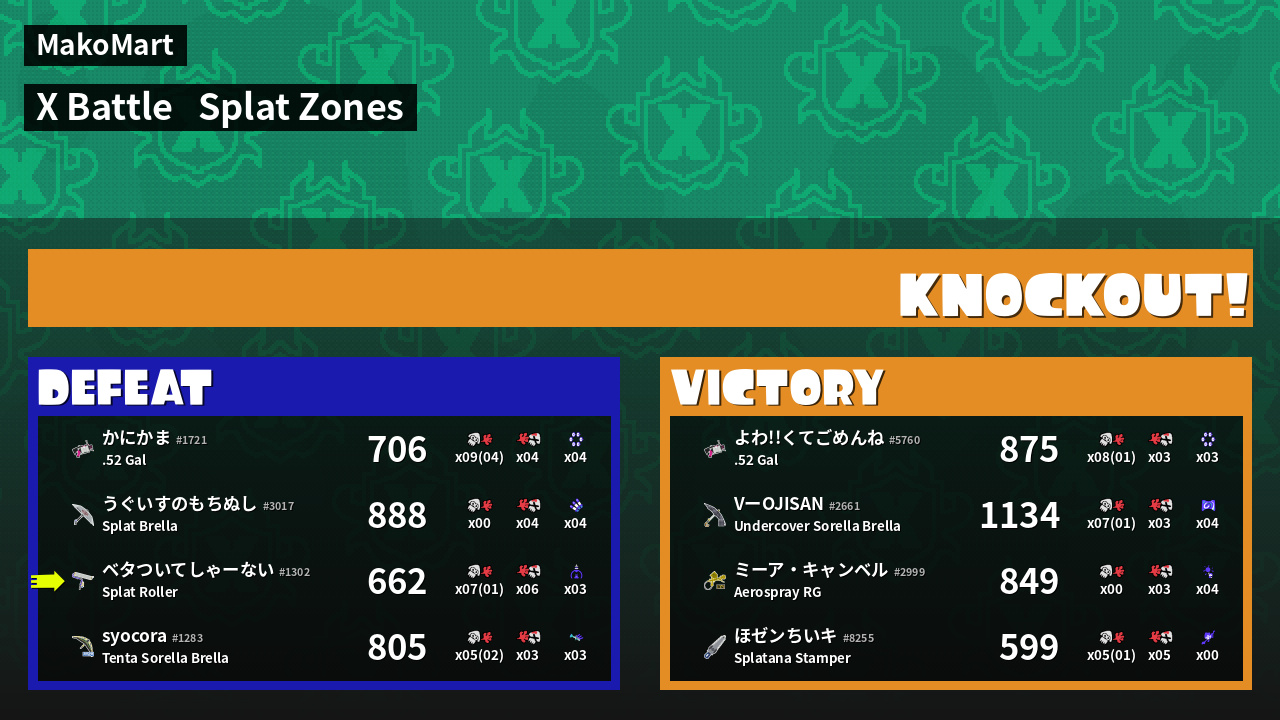 | Mode | Splat Zones - X Battle | ||