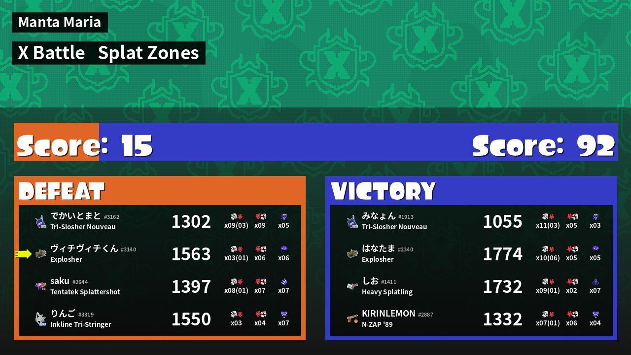 | Mode | Splat Zones - X Battle | ||