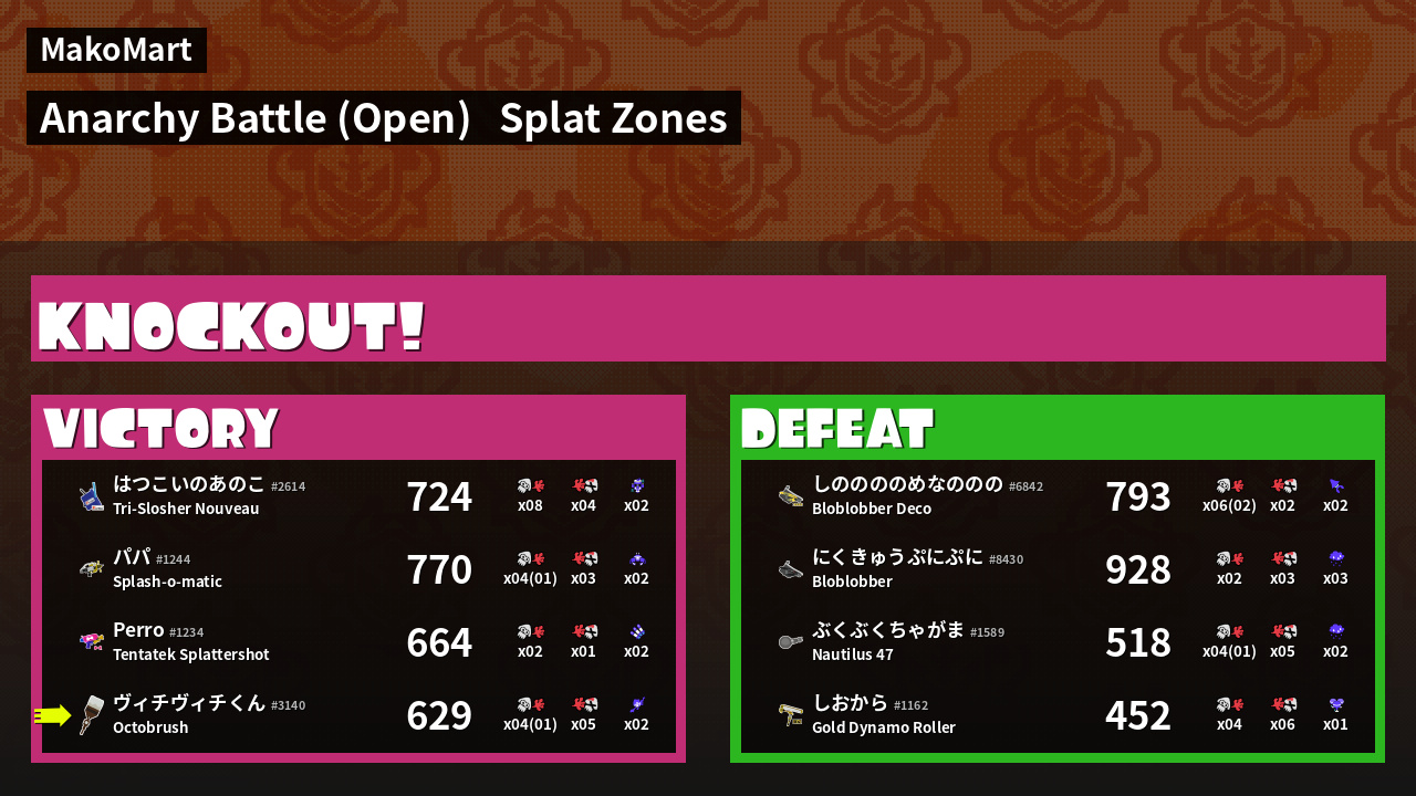 | Mode | Splat Zones - Anarchy Battle (Open) | ||