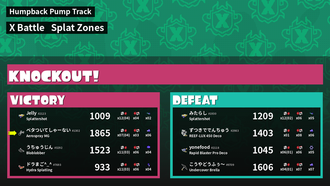 | Mode | Splat Zones - X Battle | ||