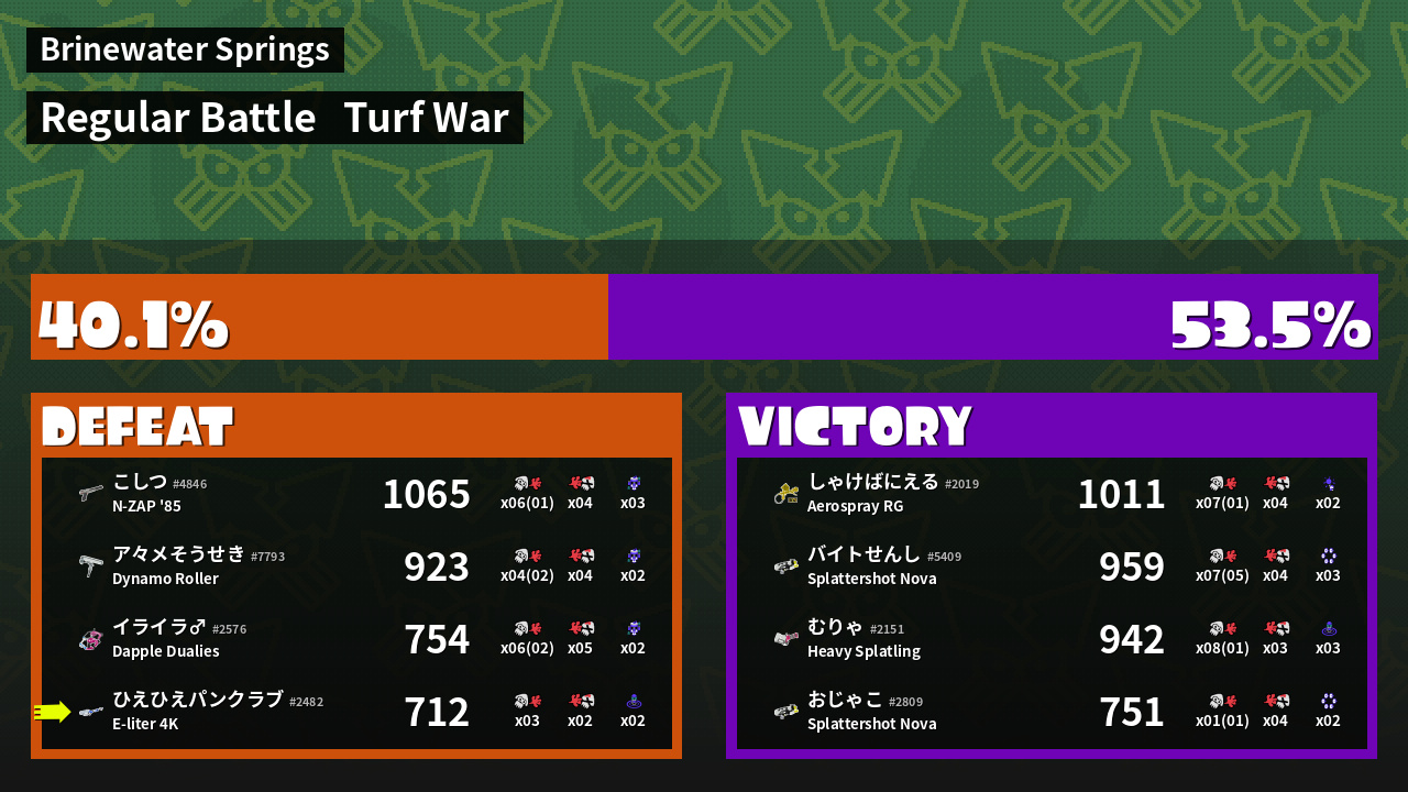 | Mode | Turf War - Regular Battle | ||